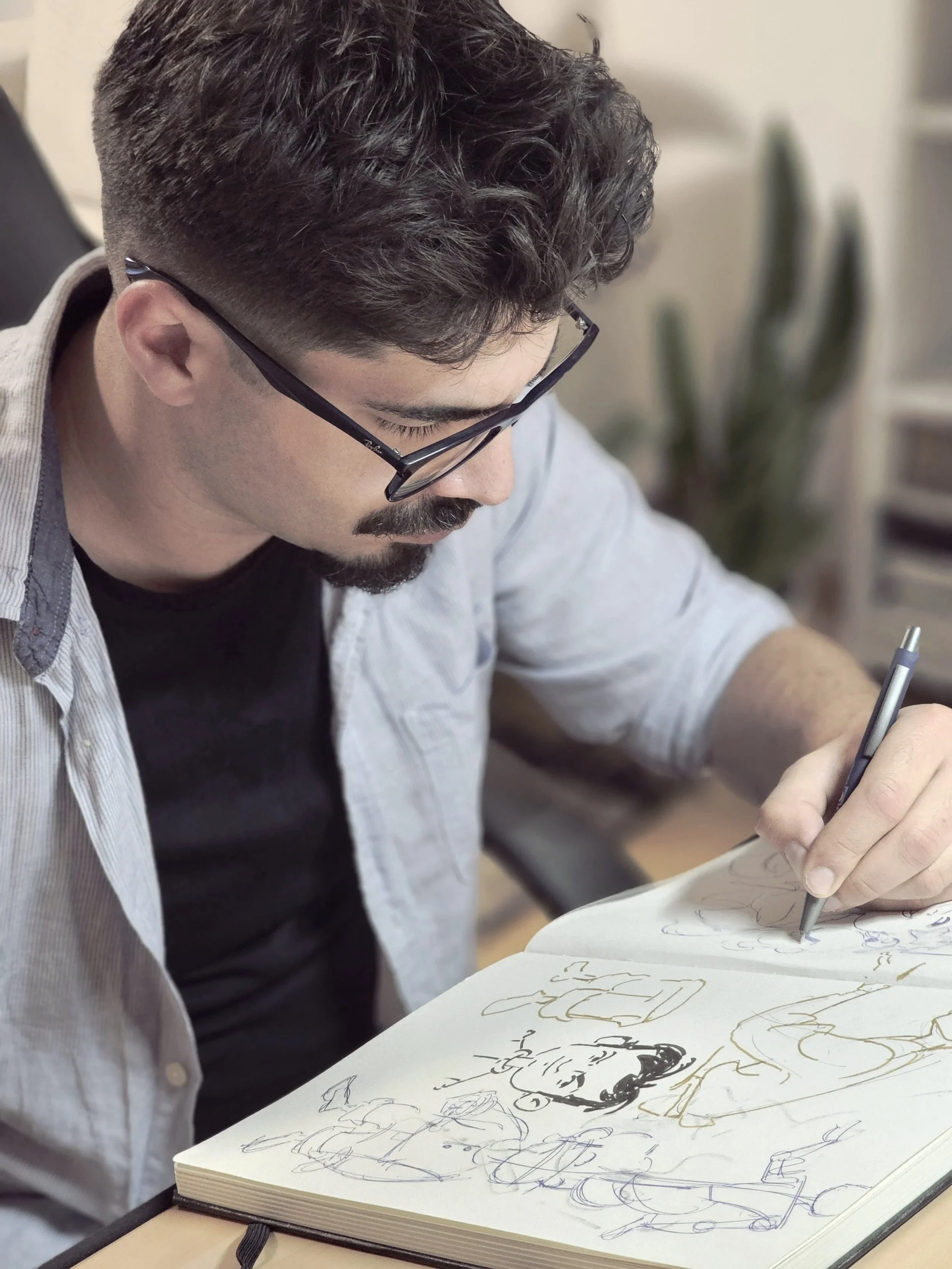 Stefan Nikolic is a character designer and illustrator from Serbia. He now lives in Austria with his wife Kristina, who is also an illustrator, and their dog, Magi. At 14, Stefan moved to Niš to attend art school, and later to Belgrade to earn his MA in Fine Arts from the University of Arts in Belgrade. Early in his career, he worked with mosaics and oil paintings, exhibiting in shows across Belgrade, Niš, and Kragujevac. Five years ago, Stefan shifted to digital art, joining the Robotpencil mentorship for character design, but he keeps his traditional painting skills alive through regular practice. He has worked with independent authors and clients on a variety of projects, focusing on concept art for movies and games. As his style evolved, Stefan discovered his passion for children's books and animation. Books and movies often serve as his inspiration, with the movie Klaus being a standout influence on his work. He has illustrated three children's books, blending mystery and humor into his work. When he’s not working, his favorite way to spend his free time is going for long walks and playing with Magi. Stefan enjoys classic ‘70s hard rock and tending to his plants.